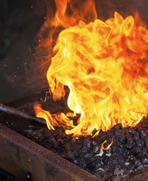 - die Arbeit in der Hitze des Schmiedefeuers nicht stört